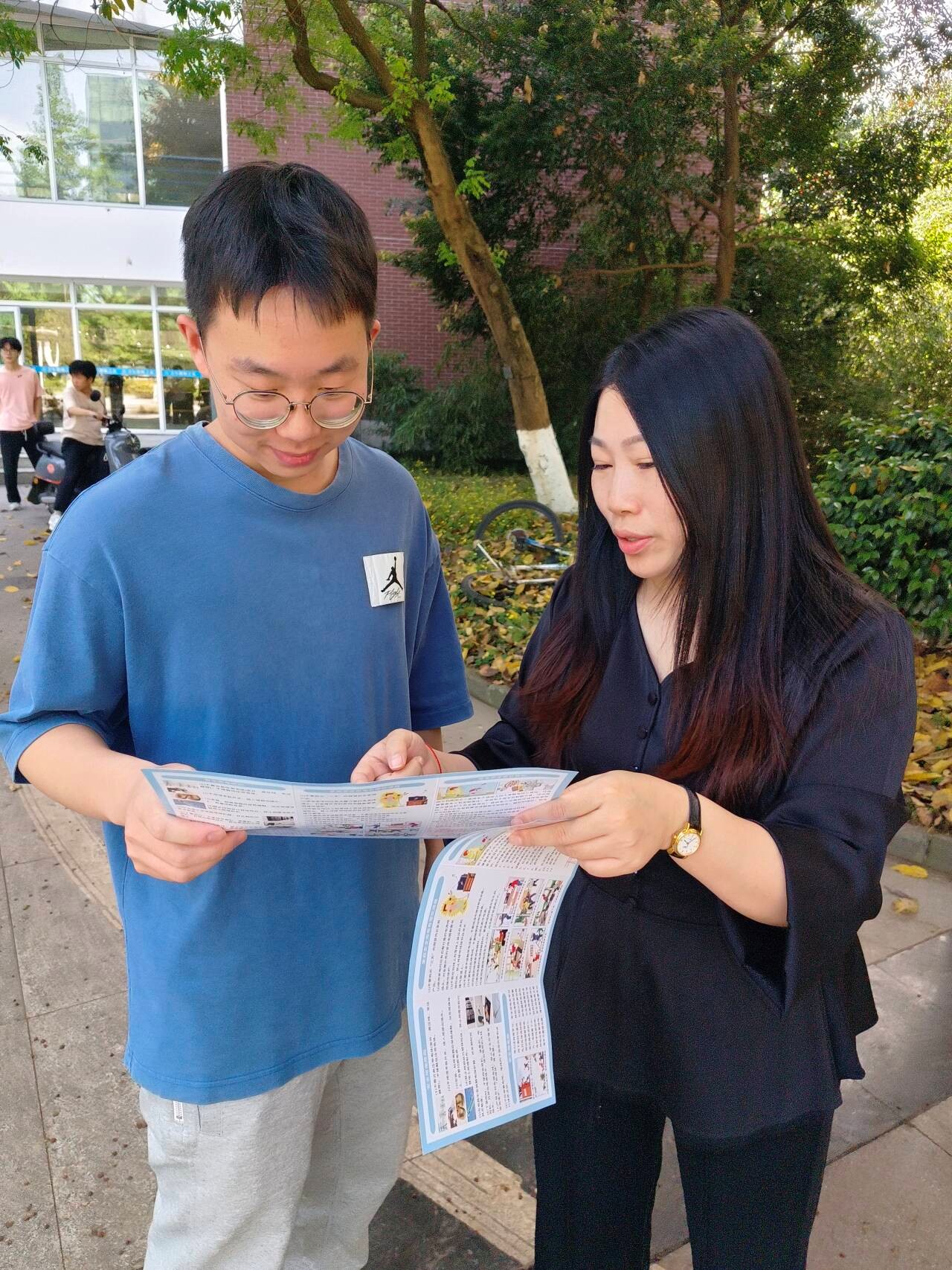活动前期,党支部班子精心筹备,制定了详细的宣传方案,明确了分工与职责。杨平老师在活动现场着重强调,党支部班子建设是活动顺利开展的关键保障。通过强化班子建设,优化组织架构,党员同志们能够各司其职、协同配合,高效地将用电安全知识传递给每一位受众。活动中,第五党支部全体党员同志统一着装蓝色队服,以整齐划一的形象出现在师生和社区居民面前,展现了良好的精神风貌。积极分发精心编写的《安全用电宣传手册》,并结合手册内容,耐心细致地为群众讲解用电安全常识,解答各类疑问,营造了浓厚的安全用电宣传氛围。