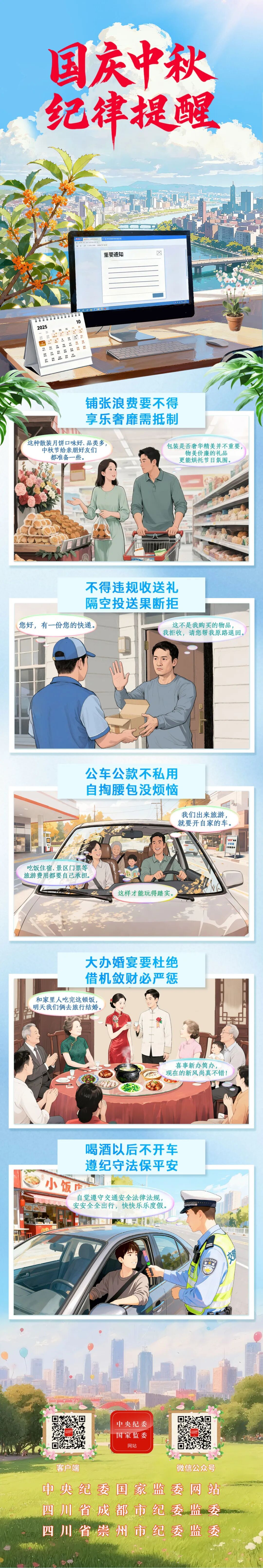 【清风伴明月,廉洁过佳节】2025年国庆中秋纪律提醒
