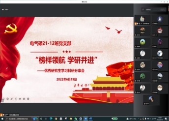 2022年6月19日,支部开展“榜样领航,学研并进”分享会活动,活动有幸邀请到学院国奖获得者梁宗佑师兄。梁师兄详细分享了自己在搜文献、读文献、写文章时的经验技巧以及如何去找创新点、快速找到自己研究的方向,给支部党员同志们提供了很多实质性的指导建议。本次分享会学术氛围浓厚,支部党员针对科研学习和学生工作进行了充分的探讨,活动加强了支部党员间的交流沟通,帮助正处于研一到研二这个关键阶段的党员们解决科研道路上的困惑并做好研究生未来两年的科研学习规划。