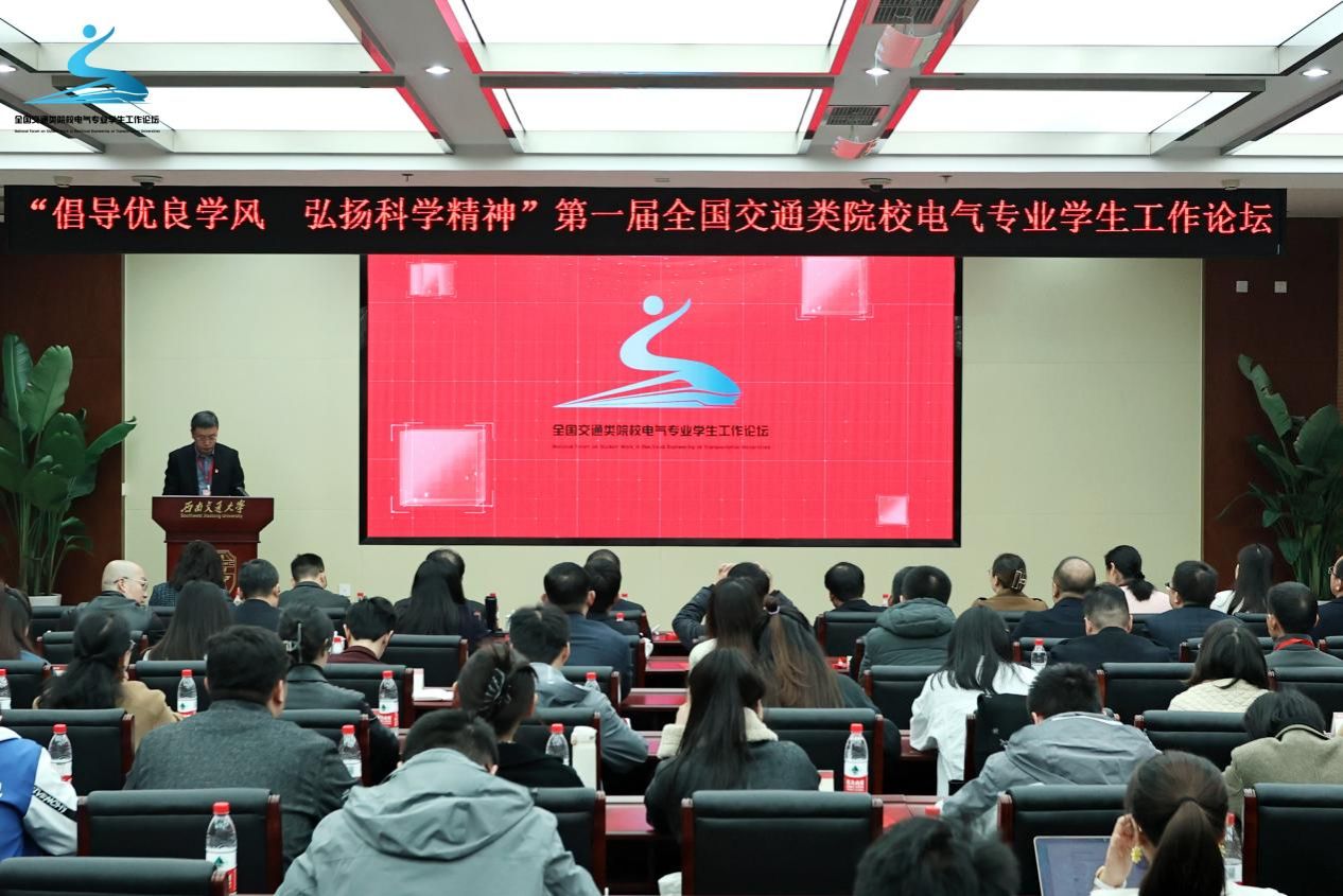 2023年11月24日,第一届全国交通类院校电气专业学生工作论坛在西南交通大学犀浦校区成功举办。本届论坛由西南交通大学主办,同济大学铁道与城市轨道交通研究院、中南大学自动化学院、北京交通大学电气工程学院、兰州交通大学自动化与电气工程学院、华东交通大学电气与自动化工程学院、大连交通大学自动化与电气工程学院、石家庄铁道大学电气与电子工程学院协办,西南交通大学电气工程学院承办。