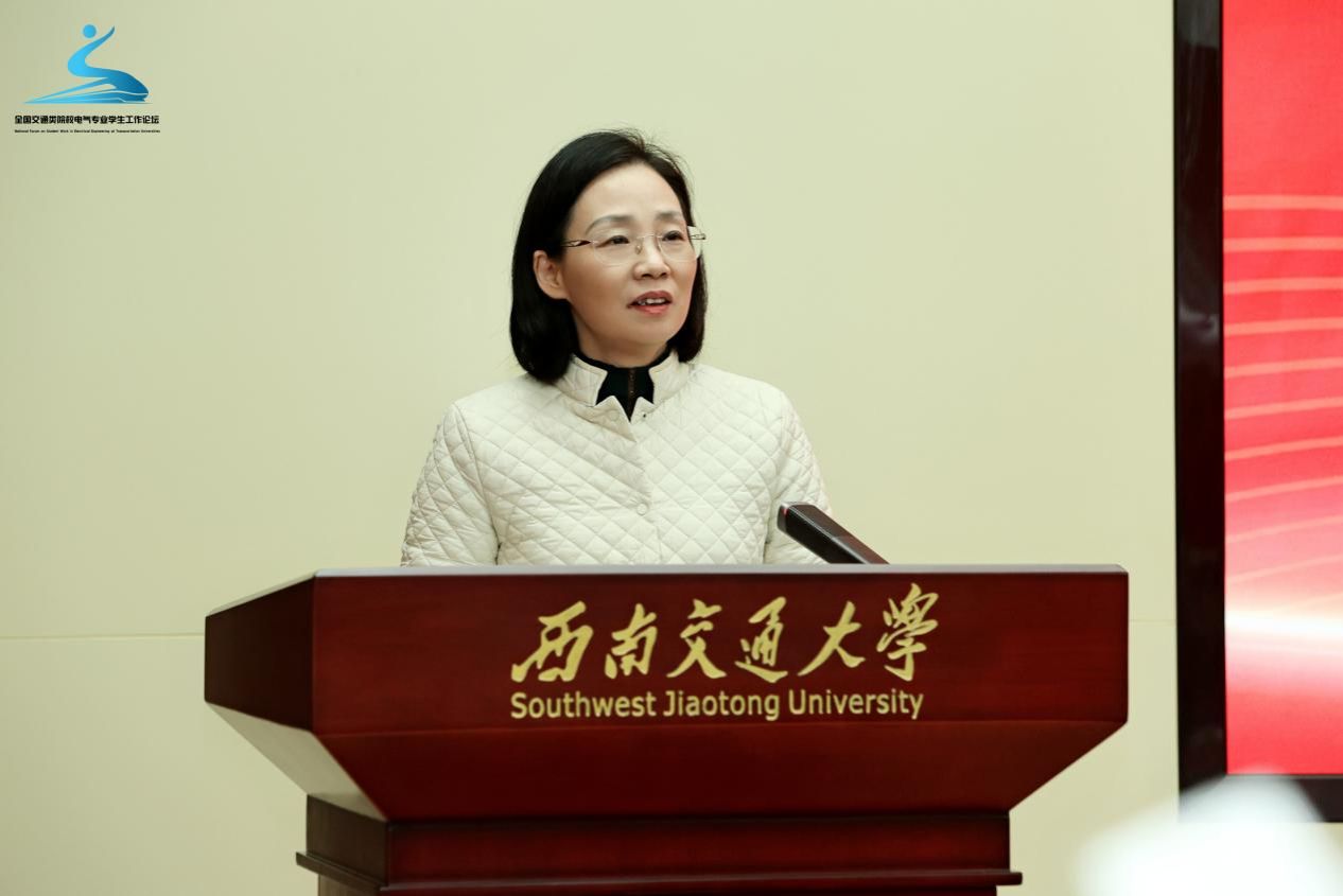 西南交通大学党委副书记杨爱华致欢迎辞。她对出席本届学生工作论坛的各位领导、来宾表示了热烈的欢迎。随后,她从历史沿革、杰出校友等多个方面介绍了学校校史校情。杨爱华副书记提到,学风建设是一项长期而系统的工程,面对新时代新要求,学校需要回应改进学风的迫切需求和呼声,更需要继续发扬以爱国主义为底色的科学家精神,引导广大师生接力精神火炬、奋进新的征程。杨爱华副书记希望本届学工论坛能为新时代电气专业育人开拓宝贵的路径,为学生工作交流思想和共话友谊建立起良好的平台。