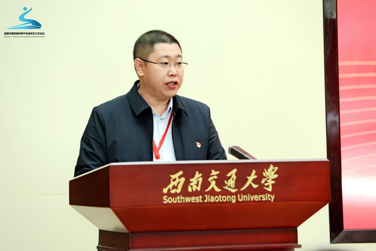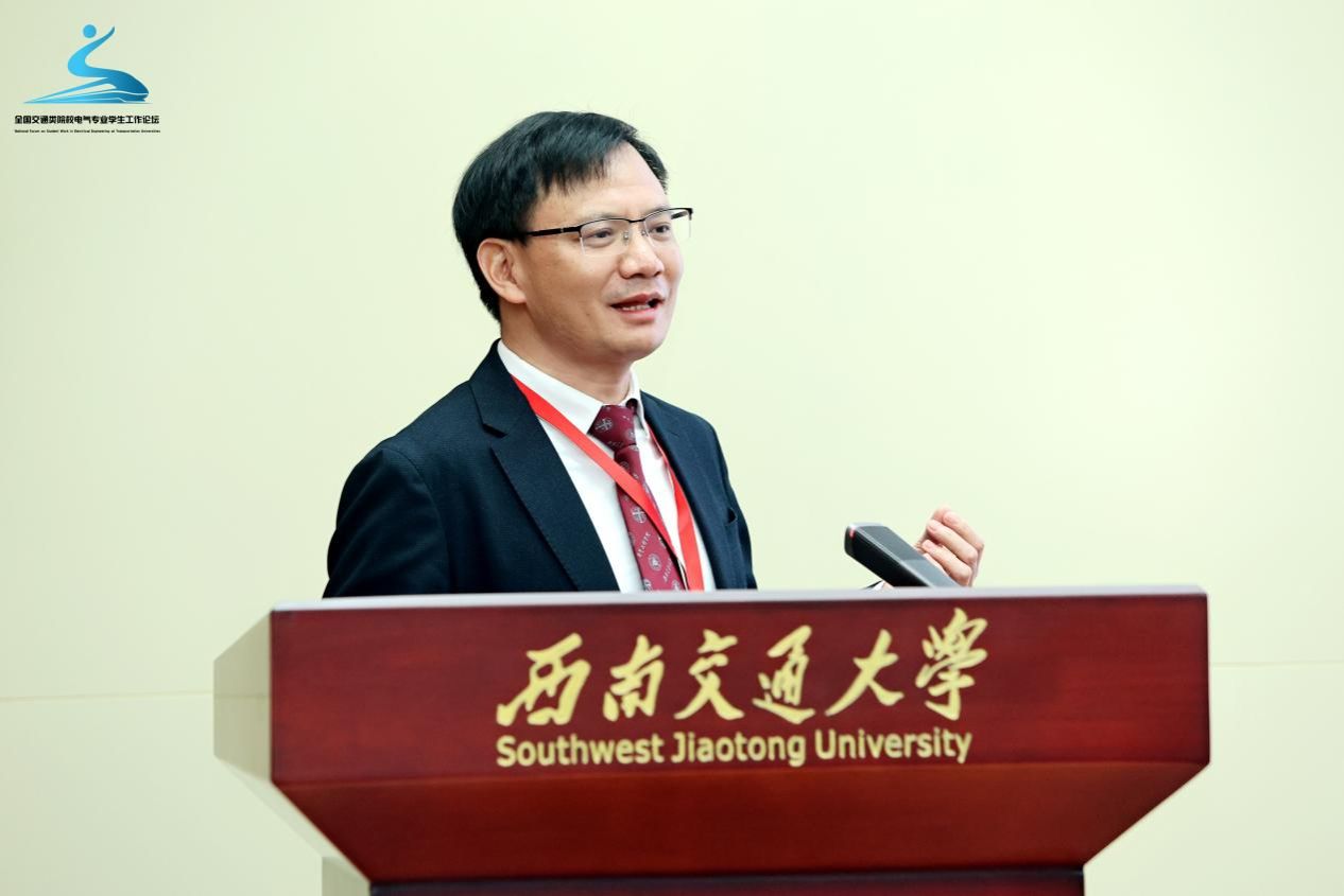 西南交通大学电气工程学院院长何正友教授从学院历史、学科建设、科研水平等方面介绍了学院发展情况。站在新的历史起点,何院长表示,未来学院将继续扎根轨道交通电气化事业,紧密服务于国家重大需求,继续加强学工队伍的建设,促进学工形式多样化发展。他提到,首届全国交通类院校电气专业学生工作论坛是一场思想的盛宴,一次发展的契机,能够更好地推进新时代大学生思想政治教育工作,通过培育时代新人切实提高服务国家、地方、行业重大需求和经济主战场的能力,为国家经济建设、社会发展做出更大贡献。