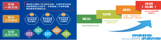近年来,在学校教务处、资实处、学工部、校团委等部门的大力支持下,电气工程学院高度重视学生实践创新能力的培养与提升,依托“创新电气135计划”的持续实施,围绕全员、全过程、全方位的本科生科技创新工作体系,形成“相见—初探—进阶—深研(拓展)”的“创新电气、智绘未来”阶梯式科创竞赛成长体系。