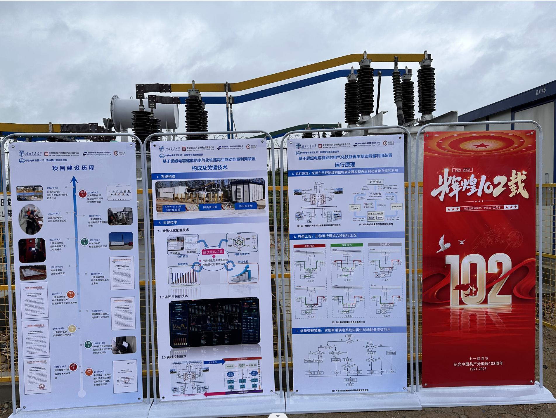 为贯彻落实国家“碳达峰、碳中和”和国铁集团“绿色低碳”的发展目标,在国铁集团科研项目《电气化铁路交流牵引供电系统再生制动能量利用技术研究》支持下,西南交通大学何正友、胡海涛、王科课题组与中车青岛四方车辆研究所有限公司、中国铁路上海局集团有限公司供电部、中国铁路设计集团有限公司、南京供电段、南京维管段等单位在京沪铁路三界牵引变电所开展了国内首套“基于超级电容储能的电气化铁路再生制动能量利用装置”示范工程项目。历时6年,逐步完成了项目立项、技术方案评审、生产研发、试用评审、施工调试、试运行等全部工作。试运行2个月后,该装置于2023年7月7日正式投运。