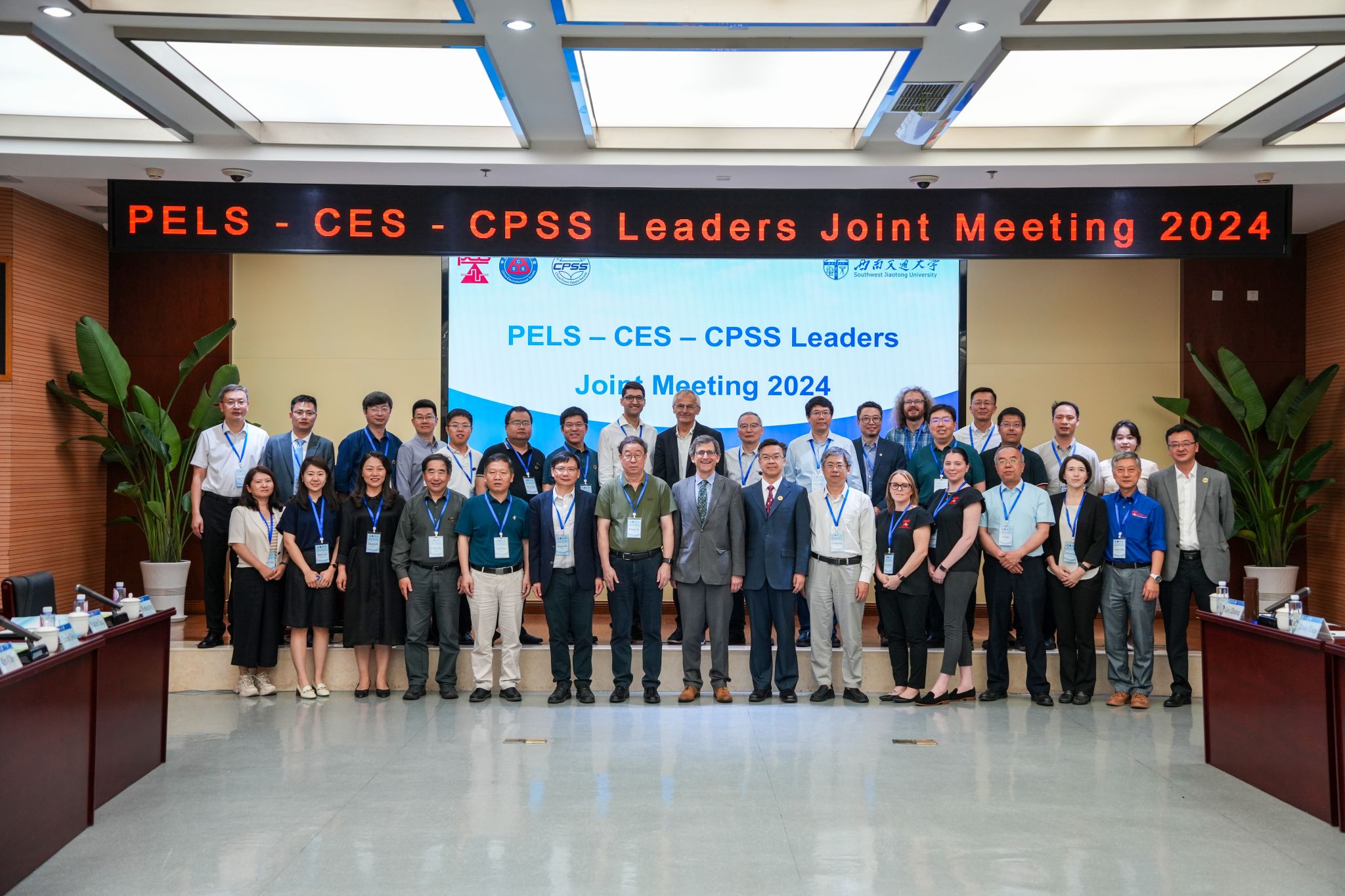 2024年5月17日,IEEE 电力电子学会(PELS)、中国电工技术学会(CES)与中国电源学会(CPSS)领导人联合会议在西南交通大学犀浦校区综合楼148会议室举行。IEEE PELS主席Brad Lehman,CES副理事长徐殿国,CPSS理事长刘进军,西南交通大学副校长康国政、何正友,IEEE PELS的前任主席 Frede Blaabjerg、Liucheng Chang,CPSS监事长、IEEE PELS副主席徐德鸿等三个学会30余名领导专家出席会议。本次会议由CPSS青工委主任、西南交通大学宋文胜和IEEE PELS前任主席 Liucheng Chang教授主持。