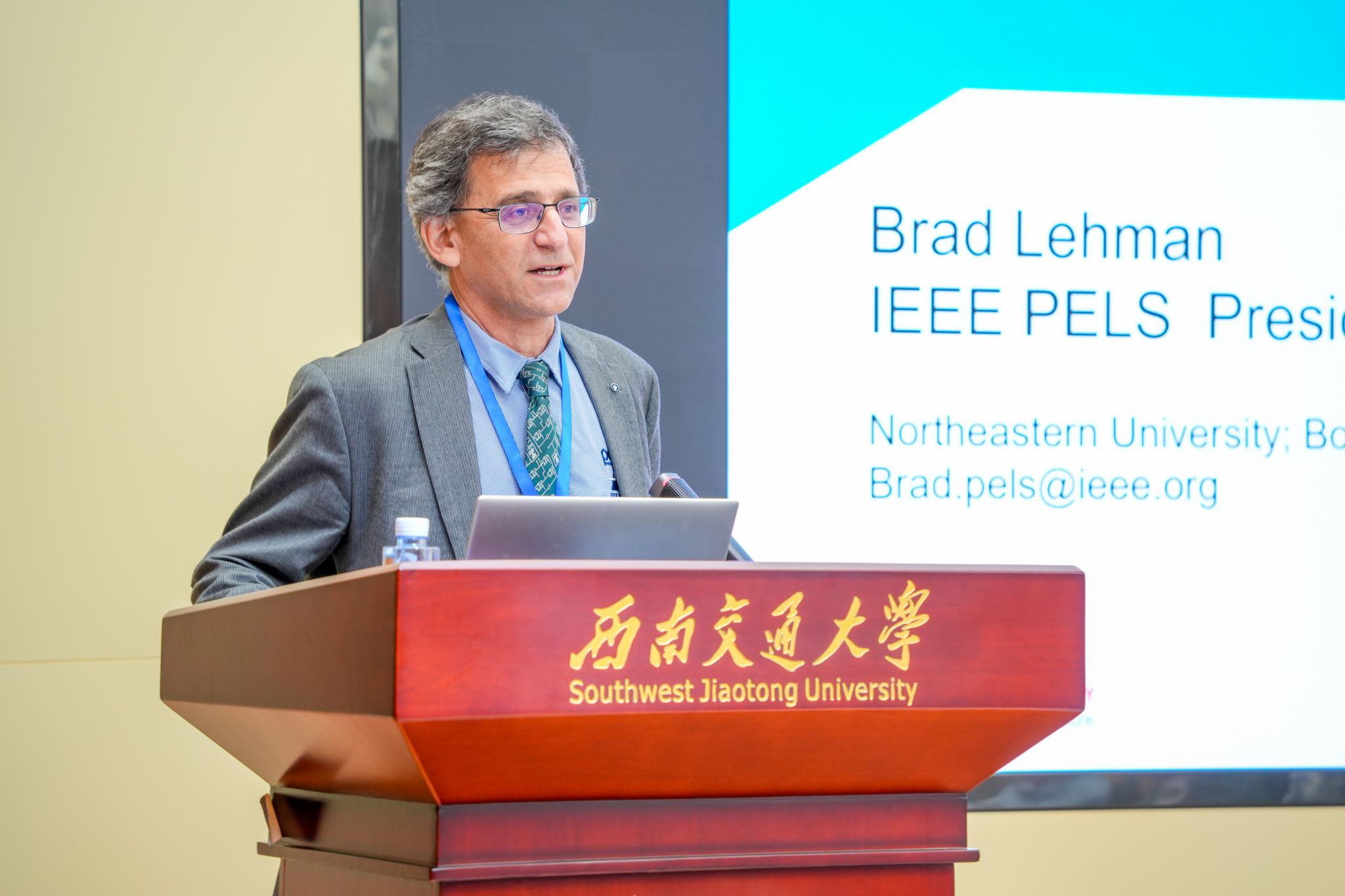IEEE PELS主席Brad Lehman首先感谢西南交通大学提供了一个高水平、高质量的学术交流平台。他简要介绍了IEEE PELS的组织架构、人员组成以及发展历程,并对IEEE PELS的入会政策与运行机制进行说明。最后,Brad Lehman对IEEE PELS、CES与CPSS未来的进一步合作进行了分析与展望。