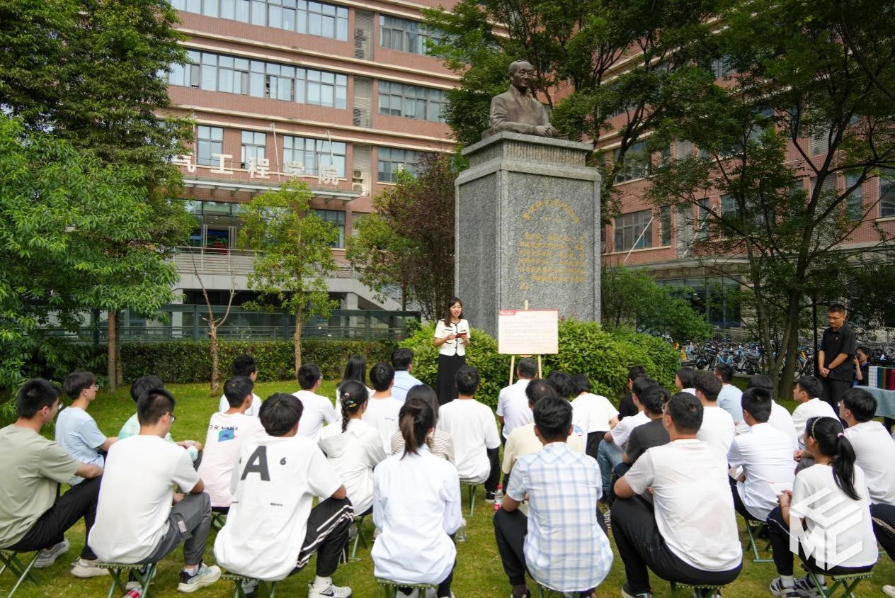 2024年5月16日下午,首期“雕塑下的大思政课”在西南交通大学犀浦校区电气馆楼前“曹建猷院士雕塑”下开展。电气工程学院党委书记王斌引用曹老原话“一切为了祖国,为了祖国建设”“其实平日想得最多的还是诸葛亮那句‘鞠躬尽瘁,死而后已’”,动情地讲述了曹老的三个故事: