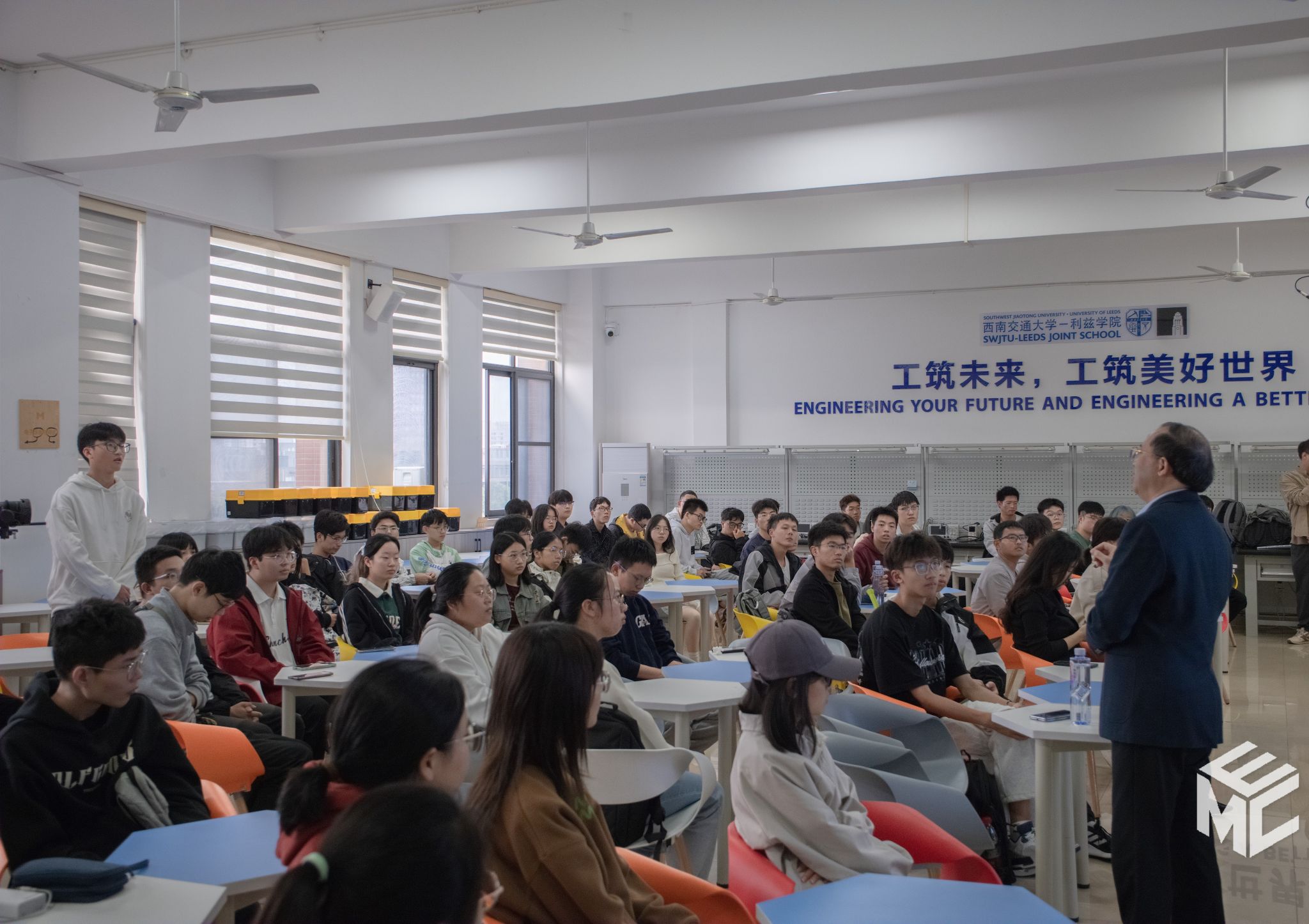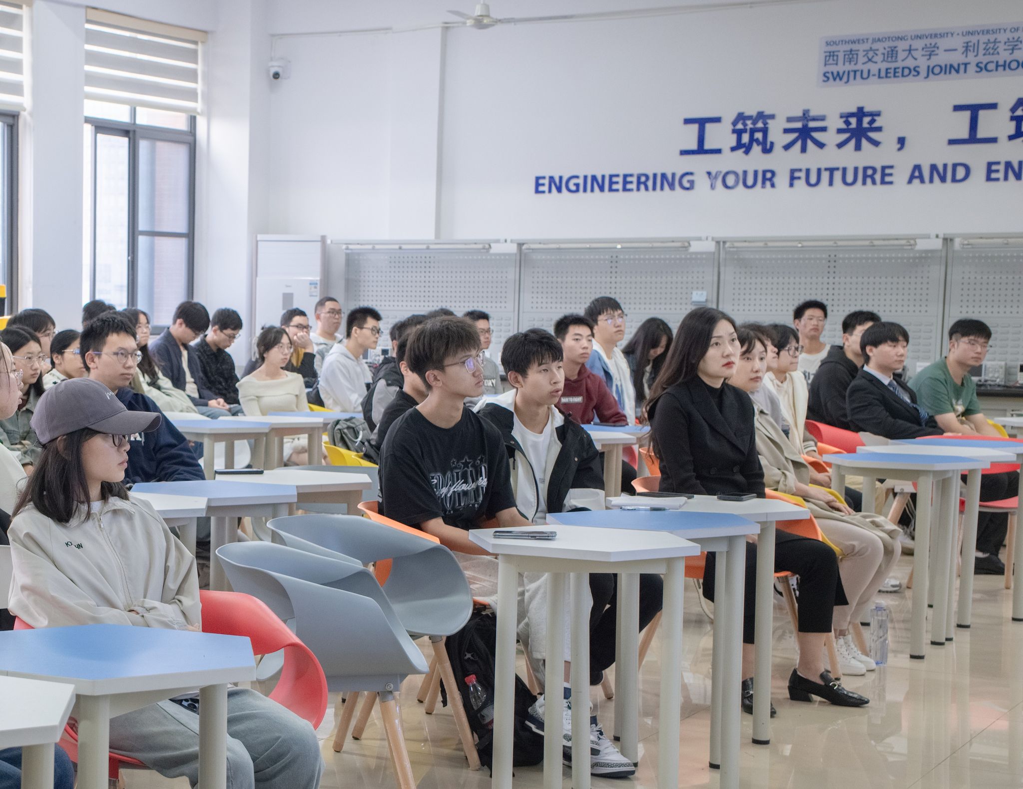 2024年10月11日下午16时,课程在犀浦校区举行。第一讲为新能源知识讲座,特邀西南交通大学氢能及储能技术研究院院长陈维荣教授担任主讲嘉宾。陈维荣教授以“‘双碳’目标下氢能在轨道交通中的应用研究”为题,结合自身丰富的研究经验和前沿学术成果,深入浅出地讲解了新能源研究背景、氢能工作原理及关键技术、研究成果及应用现状等内容,并与现场同学就氢能源的制造、运输与应用等问题展开互动交流。现场气氛热烈,掌声不断,同学们纷纷表示受益匪浅。