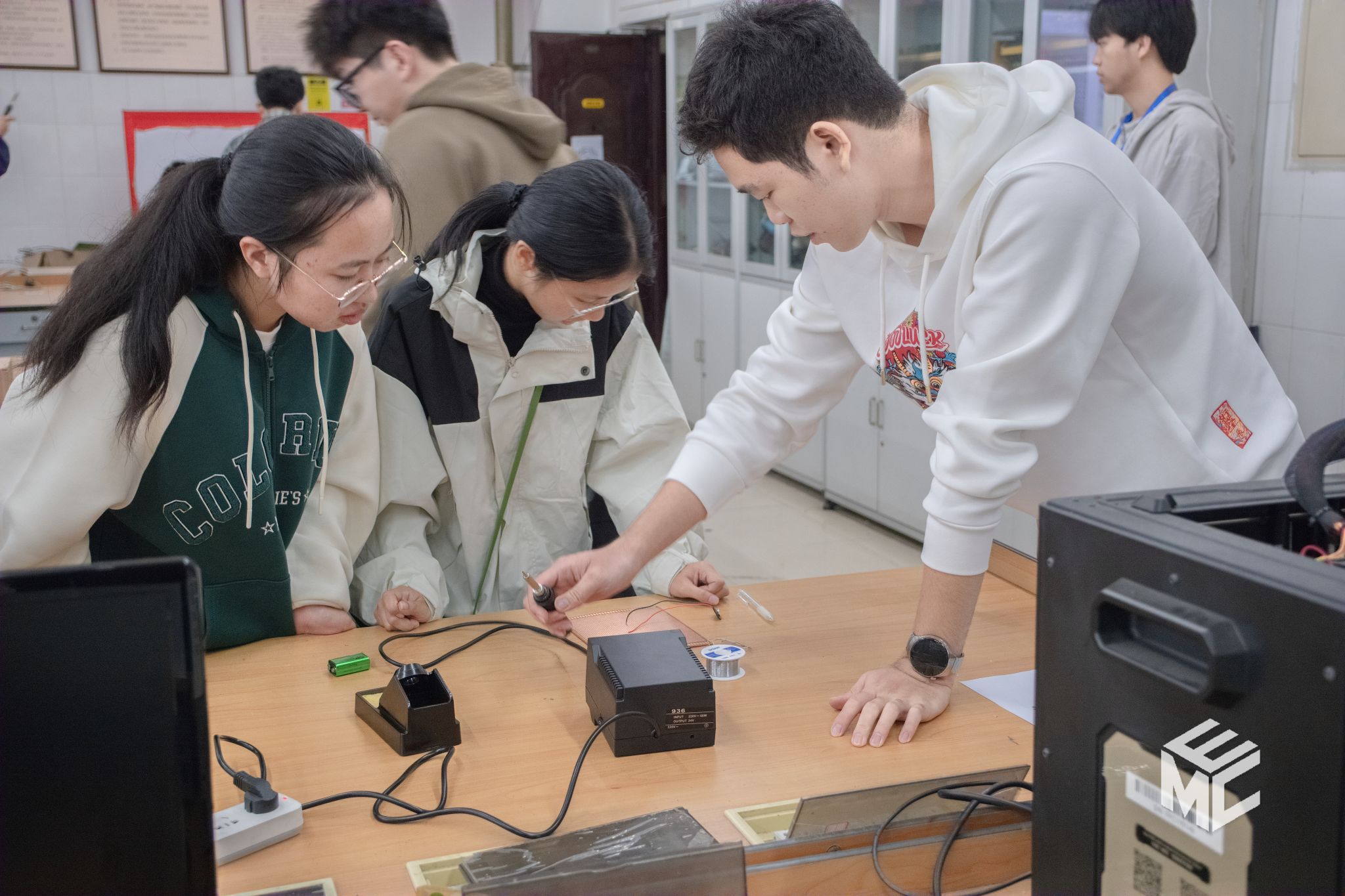 课程的最后是科创实践体验环节。在电气工程学院大学生科技活动中心工作人员的指导下,同学们亲自动手学习焊接技术,感受着劳动创造的乐趣,也更加深刻地理解了“创新无限”的真谛。科技创新,从来都不是纸上谈兵,而是要脚踏实地,从点滴做起!
