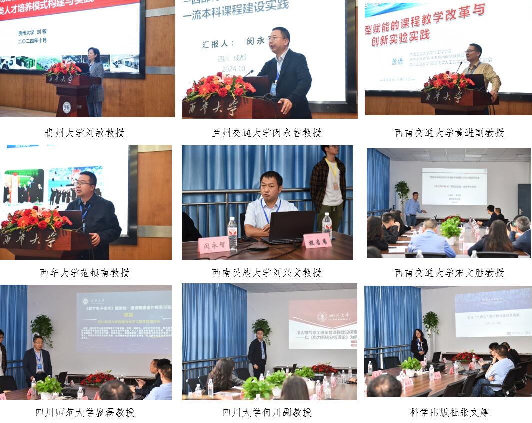 在主题报告会上,多位专家与学者带来了深度且精彩的分享,为与会者呈现了教育的最新探索与实践。贵州大学刘敏教授介绍了面向新型电力系统而提出的“德育并举、虚实结合”电气类人才培养模式。兰州交通大学闵永智教授分享了电气测试技术国家级一流课程的建设实践,通过实例展示了高水平课程建设所取得的显著成果。西南交通大学黄进副教授通过介绍AI大模型在课程教学改革与创新实验中的赋能作用,深入探讨了新技术如何为教学带来前所未有的变革与前景。西华大学电气与电子信息学院范镇南教授详细讲述了电气工程及其自动化国家一流本科专业建设的实践经验。西南民族大学刘兴文教授、西南交通大学宋文胜教授、四川师范大学廖磊教授和四川大学何川副教授也分别就电气信息类专业建设和一流课程建设分享了宝贵经验。科学出版社张文婷详细介绍了“十四五”数字教材建设的定义及优势,她表示将致力于做好顶层设计,锤炼精品教材,以推动教学的便捷化与高效化。