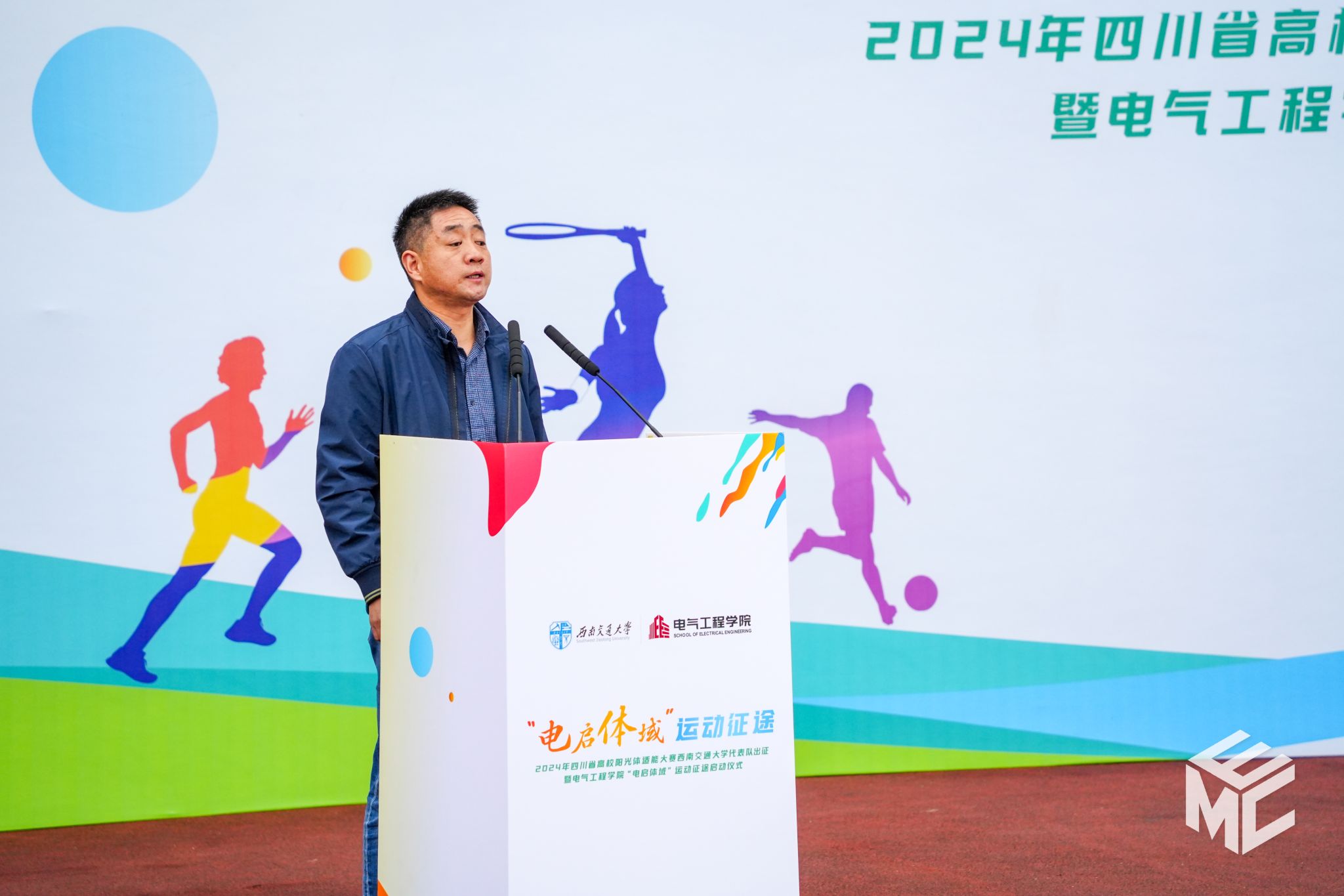 2024年11月11日上午8时30分,西南交通大学参加2024年四川省高校阳光体适能大赛出征仪式暨电气工程学院“电启体域”运动征途启动仪式在犀浦校区北区体育场举办。校党委副书记高平平,体育学院院长、奥运裁判刘江,党委学生工作部部长张军琪,电气工程学院院长马光同,党委书记王斌,校团委副书记李娜,学院党委副书记邢晓鹏,全体辅导员老师与电气工程学院近1000名师生共同参加。本次仪式由邢晓鹏副书记主持。
