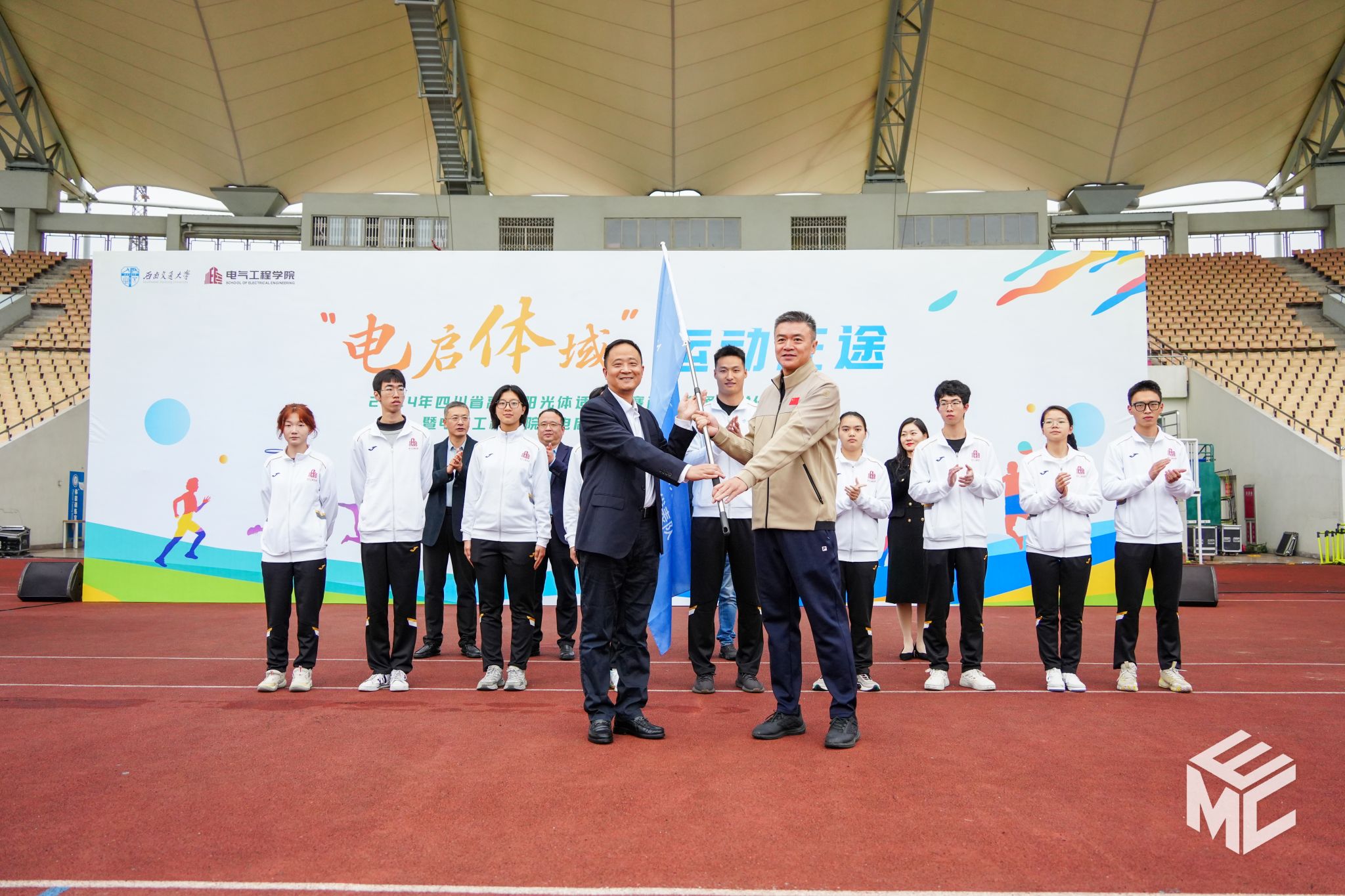 赛前,我院积极响应、认真筹备,通过学院内部自愿报名、根据体测成绩初步筛选、体育学院组织系统训练、队伍内部模拟测试等多个流程,最终确定8名测试成绩最优异的同学组成西南交通大学代表队参加此次比赛。11月11日上午,西南交通大学参加2024年四川省高校阳光体适能大赛出征仪式暨电气工程学院“电启体域”运动征途启动仪式在犀浦校区北区体育场举办,校党委副书记高平平为四川省高校阳光体适能大赛西南交通大学代表队授予校旗,全校1000余名师生共同为运动员们加油助威。