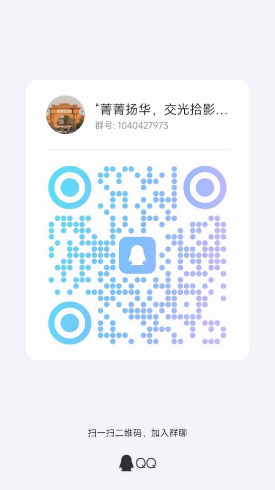 6.请所有参赛同学加入 “菁菁扬华 交光拾影” 第三届校园摄影作品征集活动QQ通知群(群号:104042973)。
